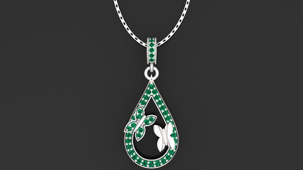 Meticulously handcrafted from the finest 925 sterling silver, the Faraasha pendant features a graceful teardrop frame, pavé-set with a shimmering line of brilliant gemstones. Captured within this sparkling embrace are two delicate butterflies—one glittering with matching gems, the other serene in polished silver. Together, they represent the beautiful journey of transformation, making this piece a profoundly personal and meaningful emblem.